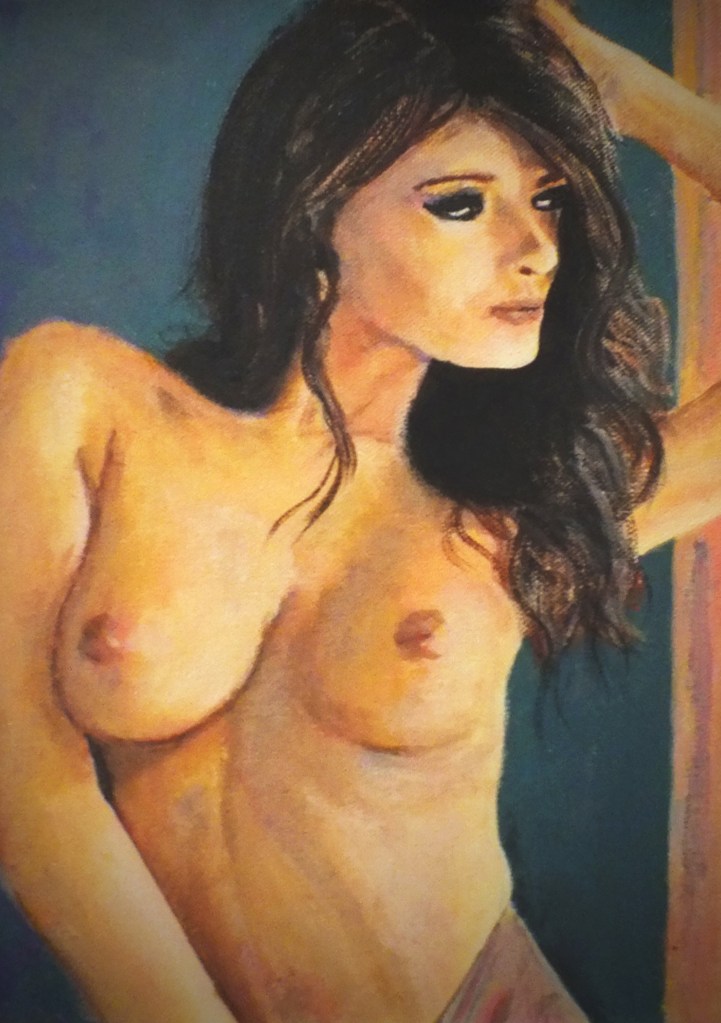 As you may have noticed, I discovered that I really like painting pictures of nude women. There’s something about the curves that is just wonderous to paint. However, I also like painting mushrooms and fish, so it’s not all about tits. I wonder if I’d enjoy painting a nude man. I guess the answer is ‘maybe’. I might try it one day and see how it goes. But which man would I paint? Maybe you can write to me with a suggestion.